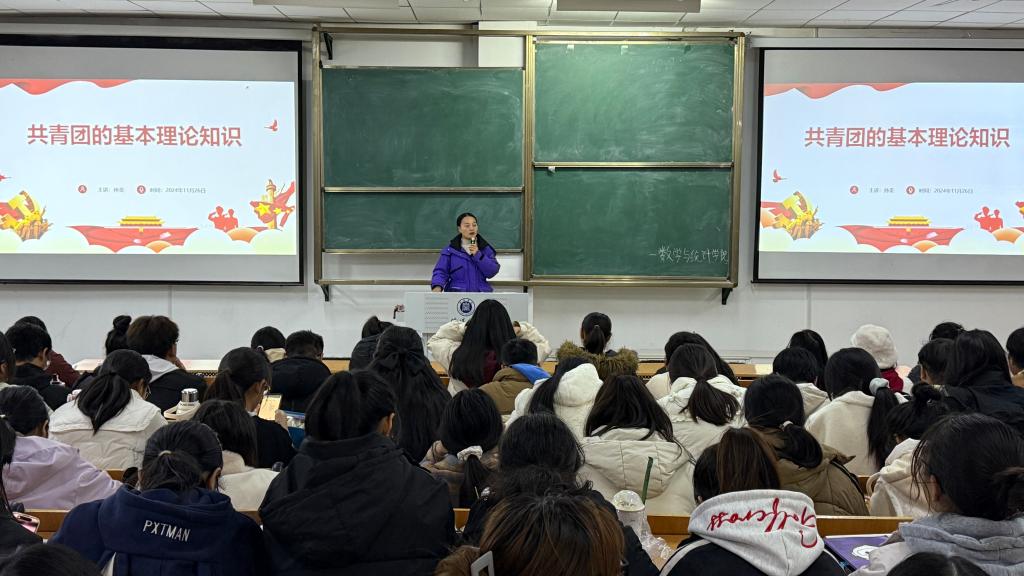 为进一步加强共青团理论学习,提升自我综合素质,11月26日晚,数学与统计学院在社科楼219教室进行团校培训第四讲,本次培训由辅导员孙美主讲。