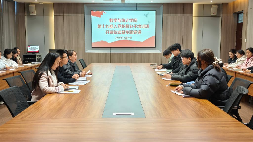 为深入学习贯彻习近平新时代中国特色社会主义思想,加强党员发展工作,筑牢入党积极分子的思想根基,11月19日下午,数学与统计学院在社科楼109会议室举行第十九期入党积极分子培训班开班仪式暨专题党课。学院党总支书记郭二军、学工干事田媛、第一学生党支部书记孙美以及第十九期全体入党积极分子参加会议,会议由田媛主持。