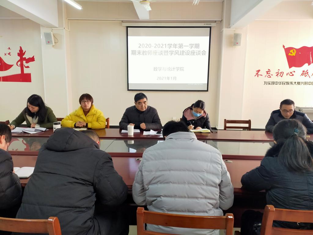 1月15日上午,数学与统计学院召开期末教师座谈暨学风建设座谈会,学院领导班子成员及全体青年教师、辅导员参加了会议。
