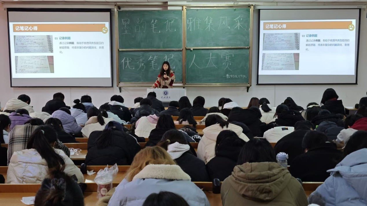 为了养成良好的学习习惯,展现同学们扎实的学习成果与认真的学习态度,11月26日,数学与统计学院在社科楼219教室成功举办“墨韵笔记,雅集风采”优秀笔记人大赛。全体辅导员担任此次大赛评委,各年级学生代表到场观看。