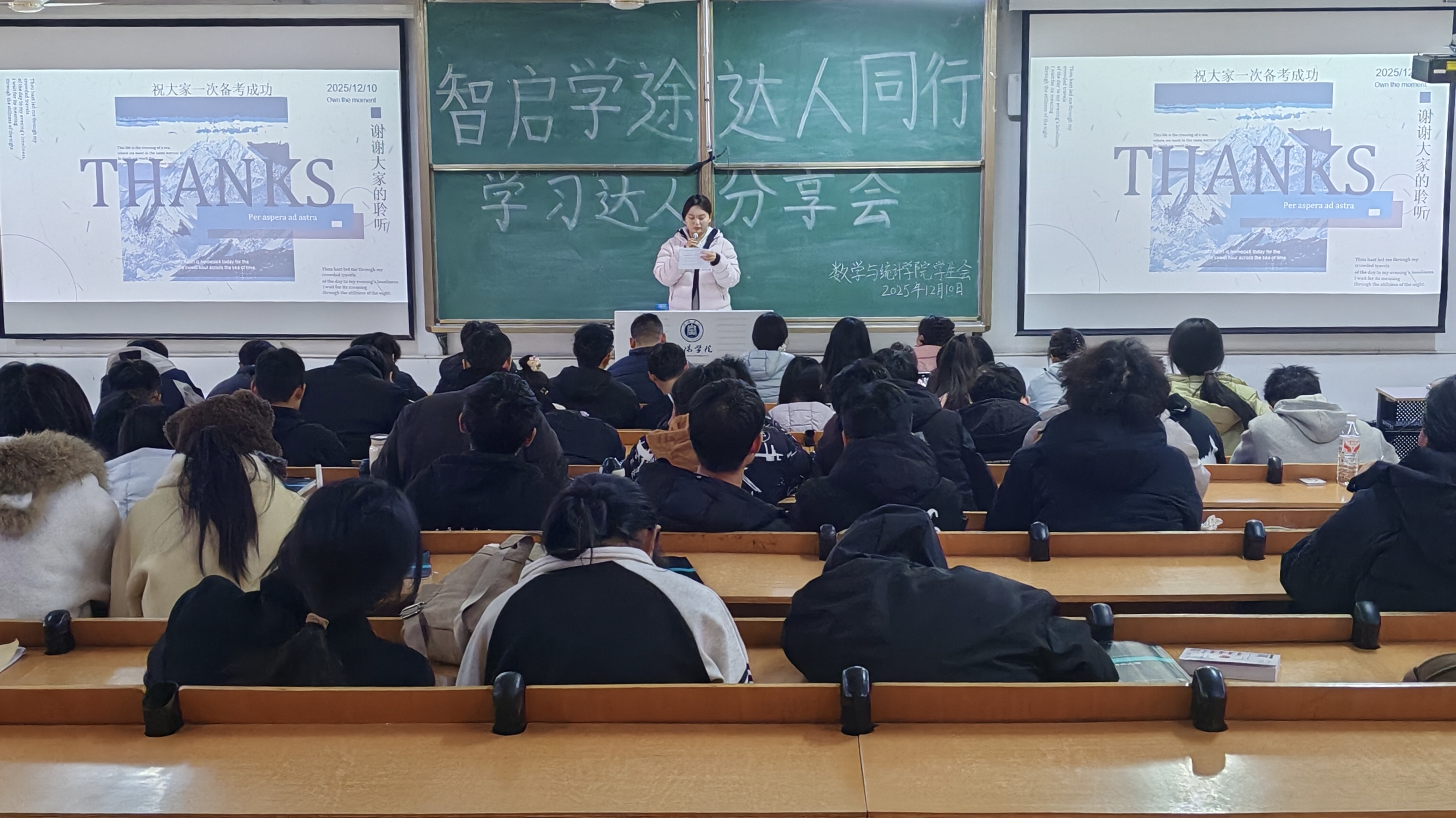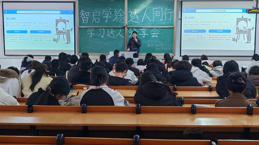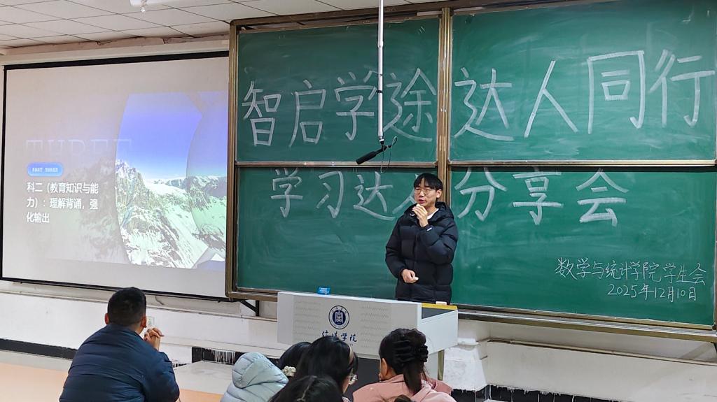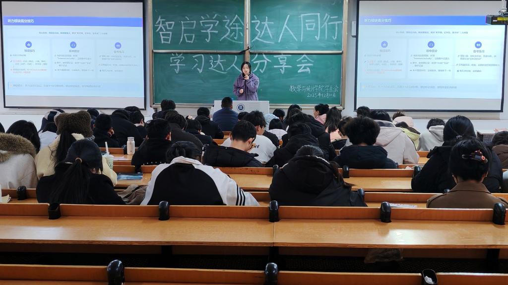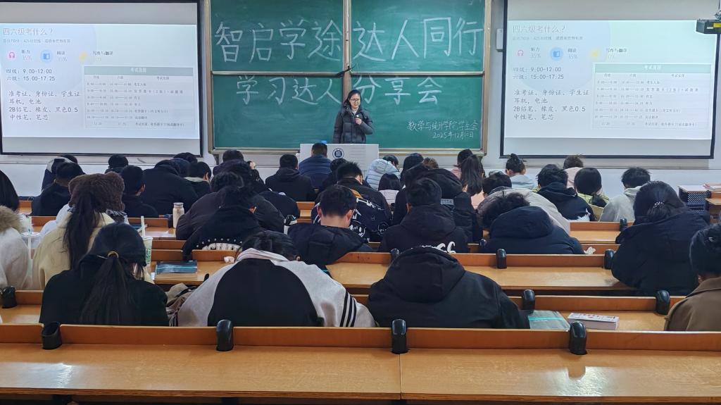 为发挥优秀学生的榜样引领作用,帮助同学们明晰学习方向、提升备考效率,12月10日,数学与统计学院在社科楼112教室举办“智启学途 达人同行”学习达人分享会,全体辅导员以及各年级学生代表参会。