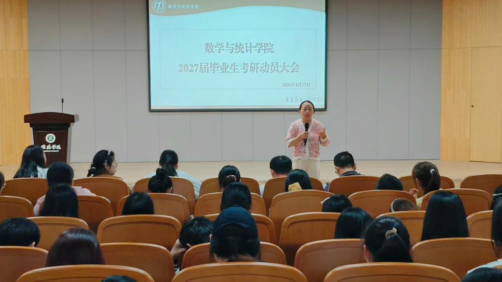 为进一步明确考研方向,激发备考斗志,帮助2027届毕业生科学规划考研之路,4月17日下午,数学与统计学院在图书馆101报告厅召开2027届毕业生考研动员大会。学院党总支副书记田媛、全体辅导员及2027届全体毕业生参加本次大会。