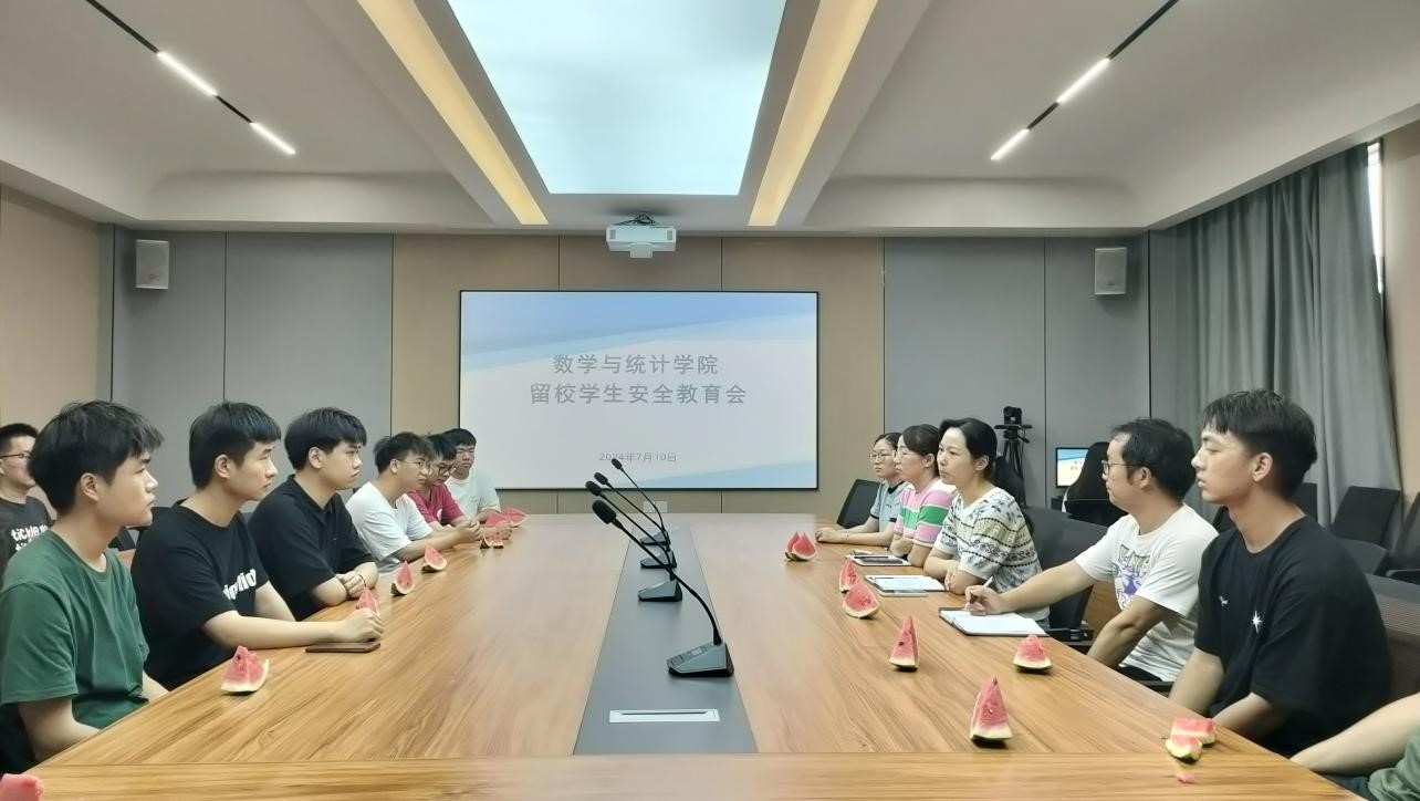 为做好暑期留校考研学生的安全稳定工作,7月10日上午,数学与统计学院在社科楼419会议室召开了暑期留校考研学生安全教育大会,学院党总支书记高昌慧、学工干事田媛、辅导员江燕、胡超以及部分留校考研学生代表参加了此次会议。