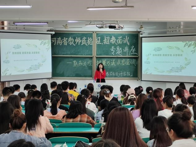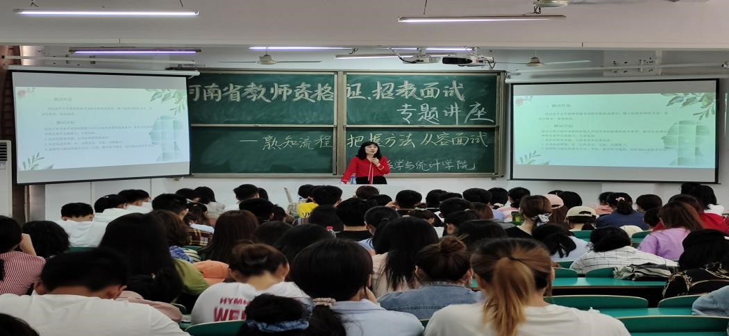 为进一步提升师范类专业学生的综合素质,帮助学生掌握面试技巧,5月8日下午,数学与统计学院特邀南湾湖风景区教育办副主任尹玲玲到校开展了题为“熟知流程 把握方法 从容面试”的教师资格证、招教面试专题讲座。院长俞迎达、学院党总支副书记刘颖方、教学副院长张聪、学工干事田媛、行政干事闫珍珠,学院全体辅导员和2017级、2018级百余名学生代表参加了此次讲座。